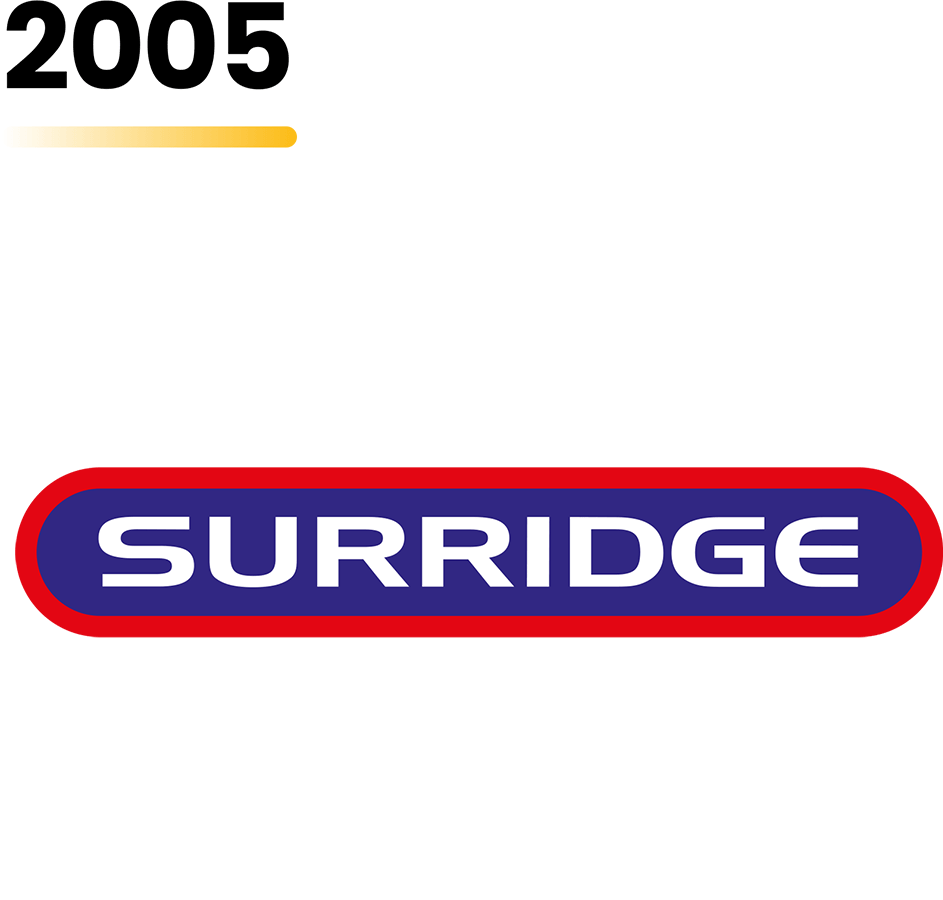 The oval Surridge trademark was changed bringing forward a more modern and versatile logo but still recognisable by the SS symbol.